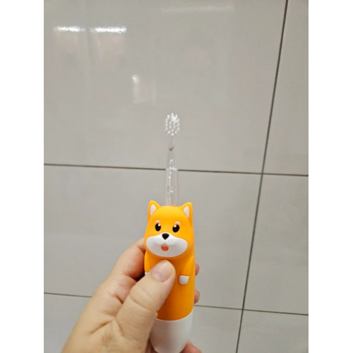 Щетка выглядит симпатично, удобно лежит в руке. Однако цвет отличается от фото на коробке, вживую оранжевый светлее. При первом нажатии включается подсветка, при повторном добавляется жужжание на трёх разных скоростях. Ребёнку год, не испугался, но пока чистить не согласился. Но тут нужно время привыкнуть, рассмотреть хорошенько) Будем надеяться, что щётка поможет решить проблему бунта при чистке зубов…